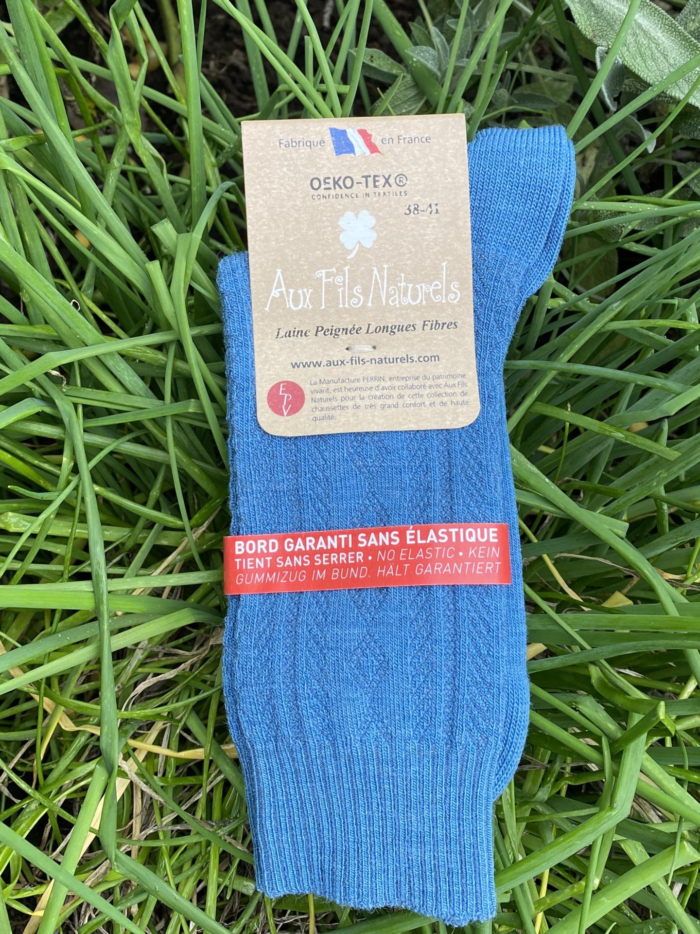 Lot de 2 paires de chaussettes sans élastique en laine peignée longues fibres